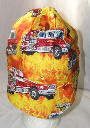 Welders Caps in Musical, Christian, Medical, Fireman theme fabrics. Each custom welder cap is handcrafted one at a time for a quality product. Some of the hats are one of a kind some can be ordered in different sizes and made to order.